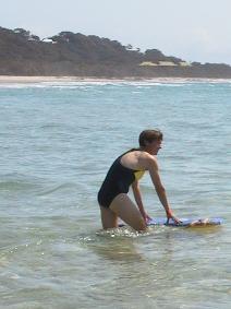 This is my mom. She also has a boogeyboard that my dad uses too. When she was a kid she went boogey boarding in maine, so, it's not exactly her first time. |