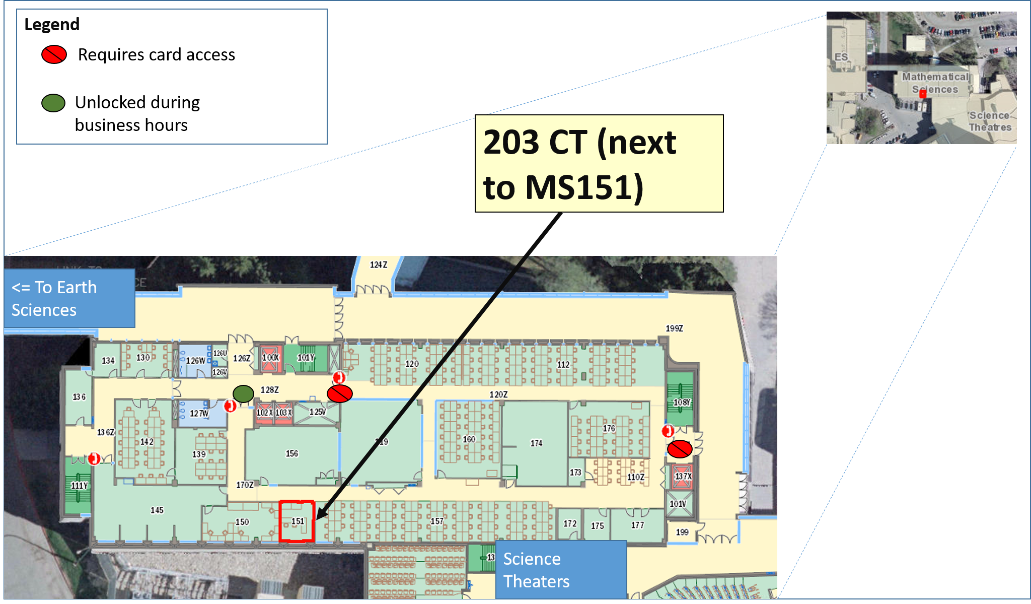 Go through the doors to the inner part of Math Sciences that is closer to Earth Sciences (the doors near the Science Theaters leads to a card access only door).