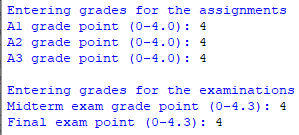 - Next the program calculates and displays output: the weighted grade