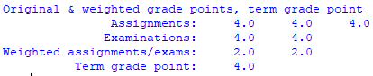 range of values (0 - 4.0 for assignments, 0 - 4.3 for the examinations).