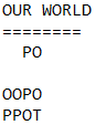 # You must implement from scratch# Shows the elements of the world. All the elements in a row will appear on the same line.
