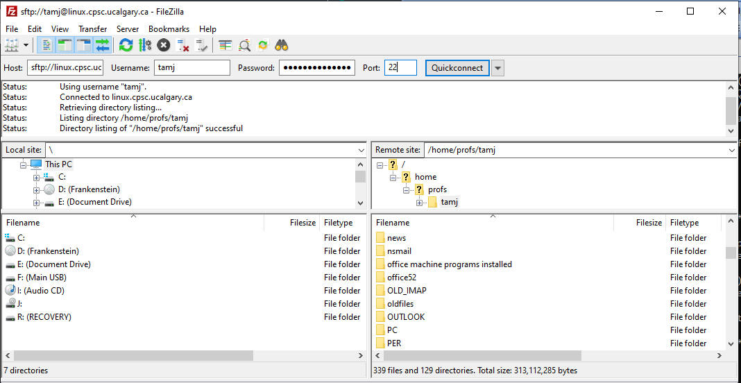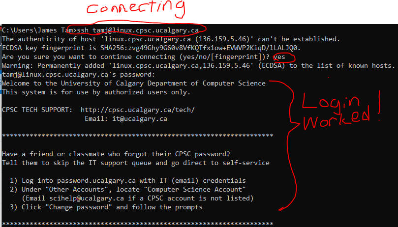 - Example of a login session (LHS = my computer, RHS = my CPSC